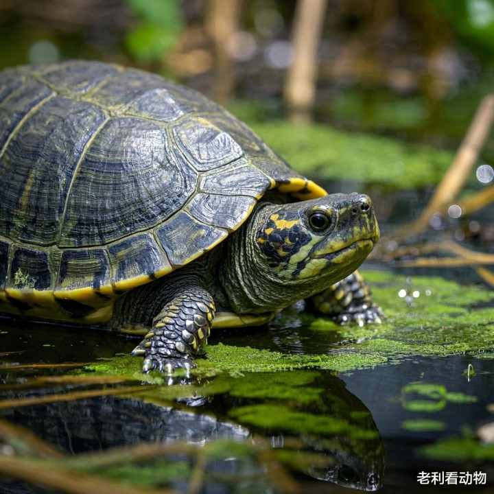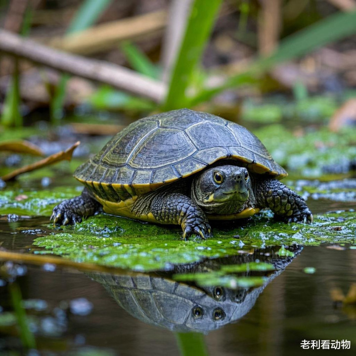 伪装也是龟类重要的防御策略。许多龟类的甲壳颜色和纹路与其栖息环境高度相似,能够有效地隐藏自己。例如,沼泽龟的甲壳常常覆盖着藻类,使其在水中难以被发现;而一些陆龟的甲壳花纹则与地表的落叶和碎石相仿。